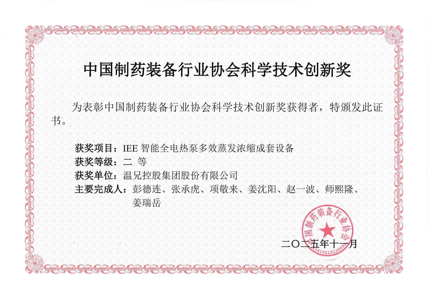 祝贺尊龙凯时控股集团荣获中国制药装备行业协会科学技术创新奖